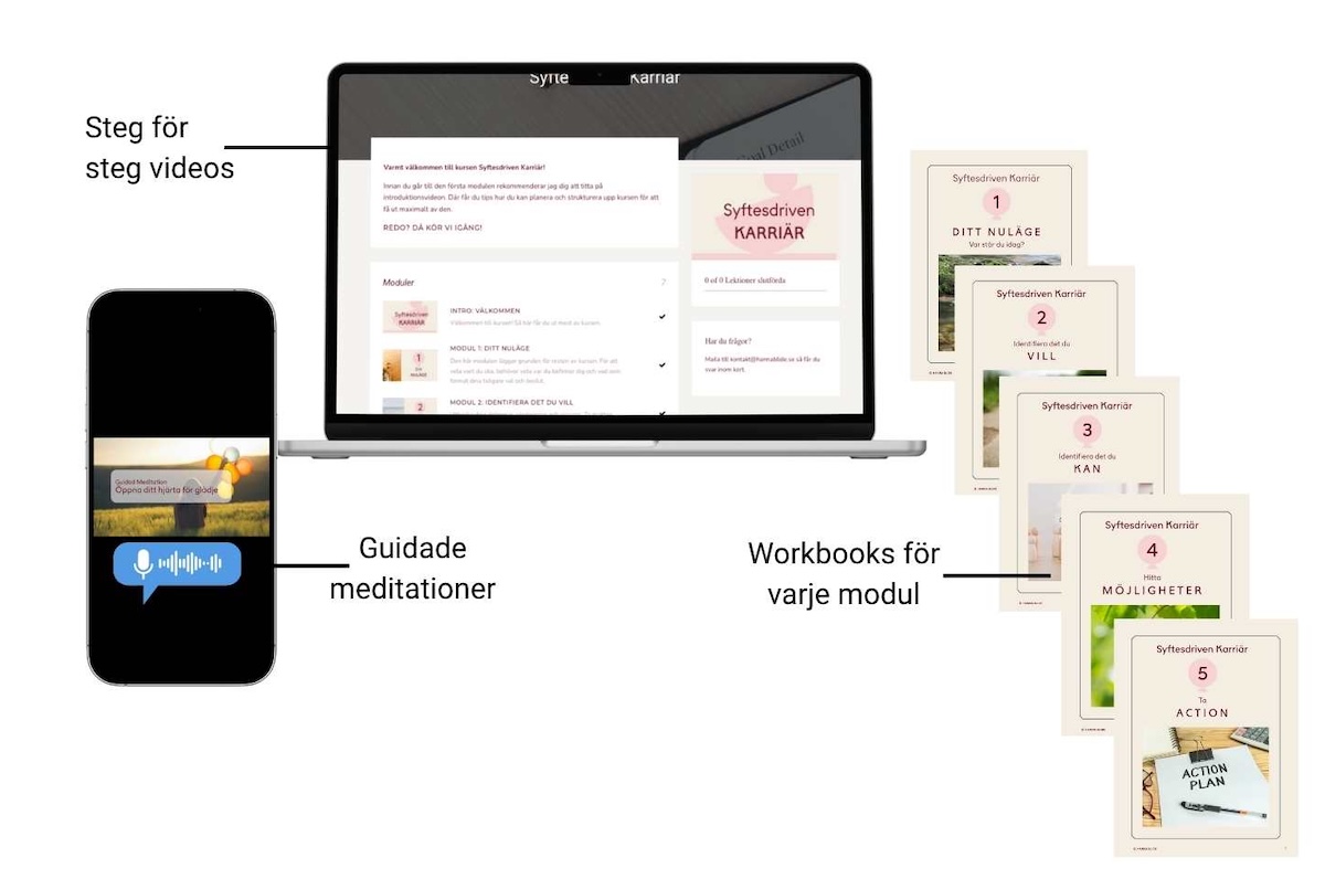 Under fem moduler blir du guidad att steg för steg hitta klarhet, mod och framåtkraft mot en meningsfull och syftesdriven karriär.